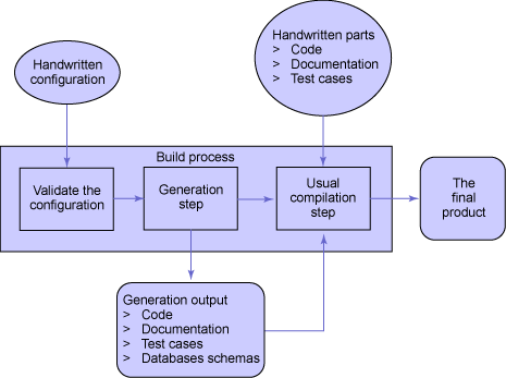 在读取配置文件之后,下一个逻辑步骤是让产品的其他部分利用这些配置信息。这时有几种方法。第一种是将配置文件嵌入软件本身,这样可以在运行时读取它们。另一个方式是使用工具(比如 Apache Commons 的 Java Velocity 引擎)生成代码和文档。