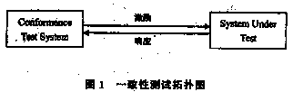 ISO/IEC 9646对一致性定义如下:“一个一致性的实现应满足静态一致性需求 和动态一致性需求,并与协议实现一致性声明(Protocol Implementation Conformance St atements,PICS)中所声明的功能相符合。” 一致性测试主要是确定被测实现(Implement ation Under Test,IUT)是否与标准规定一致。通常利用一组测试案例序列,在一定的网 络环境下,对被测实现进行黑盒测试,通过比较IUT的实际输出与预期输出的异同,判定IUT 是否与协议描述相一致。一致性测试拓扑结构如图1。表现一致性测试的重要特征是:①被测系统(System Under Test,SUT)或被测实现定义测试边界;②测试由一个能够完全控制SUT和拥有观察SUT所有通信能力的专门测试系统实施;③测试在开方式标准接口上执行,也是说接口指定在协议级。