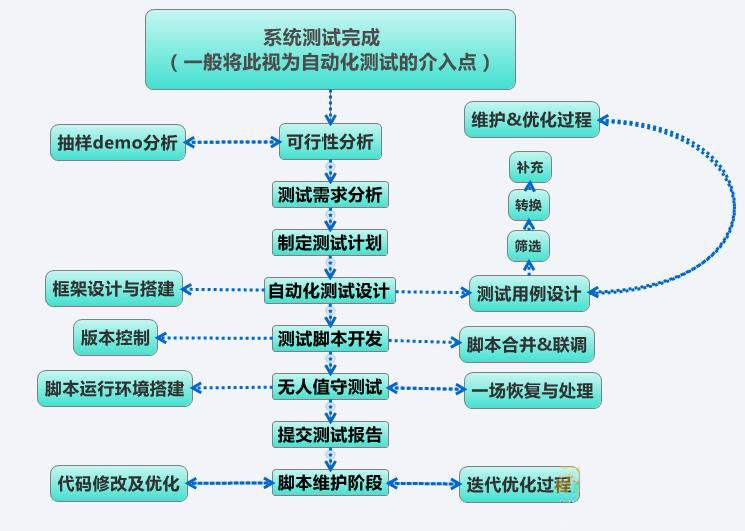 以程序测试程序,以代码代替思维,以脚本的运行代替手工测试。自动化的测试涵盖了:功能(黑盒)自动化测试,功能(白盒)自动化测试,性能测试,压力测试,GUI(Graphical User Interface)测试,安全性测试等。