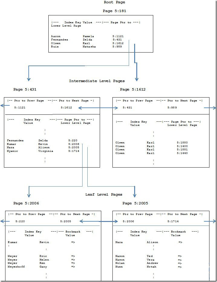 在本系列第一篇文章中,我们使用电话本的类比来解释为什么索引能够带来性能的提升。用户知道电话本是按照姓氏进行排序的,因此如果需要找”Meyer, Helen”根据首字母M知道这个人大概在电话本的中间位置,用户直接翻开大约一半电话本开始查找。但对于SQL Server来说,可并不知道什么是按字母表排序,也不知道哪一些页是所谓的中间页,除非把索引中的所有页扫描一遍。为了不用扫描所有的页来找到所需条目,SQL Server为在叶子节点之上增加了额外的页。