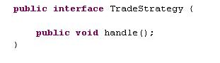 可以看到本质上StrategyContext和MultiBranchServiceImpl没有本质的区别,只是将处理的具体逻辑注入进来了。现在要测试handle方法可以参考3.1中后测试fa?ade中的handle方法,只需测试type取不同值时响应的strategyHandle是否被调用。现在来看一下TradeStrategy,它只是一个接口:
