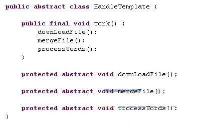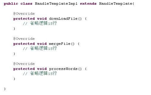 重构这个大类的基本思路还是来源于业务逻辑的划分,可以看到work中主要完成3件事:下载文件、合并文件和处理单词,这里可以采用模板模式: