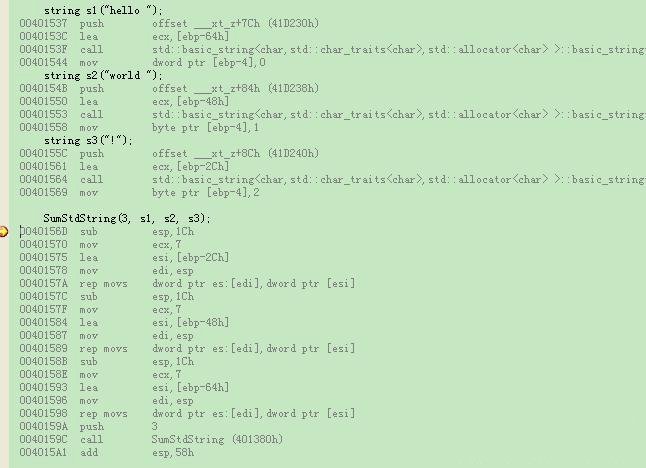 另外,可以看到后在调用sumStdString后,由add esp, 58h来外部清栈。