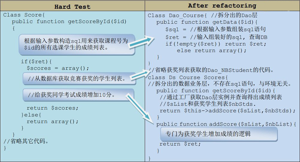 如果从设计上按分层思想将代码划分:把数据获取放入一层,把数据处理放入另一层。不同层次的职责不同,所关注的内也容不同,数据获取层只关注如何把需要的数据从DB,或是文件系统中获取;数据处理层只关注数据处理的逻辑,不用关心数据是哪里来的,这样从设计上将关注点分离,使代码的耦合性自然降低,可测性也提高了。