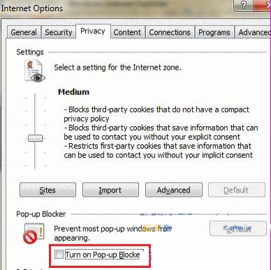 图 4. 关掉弹出阻止功能