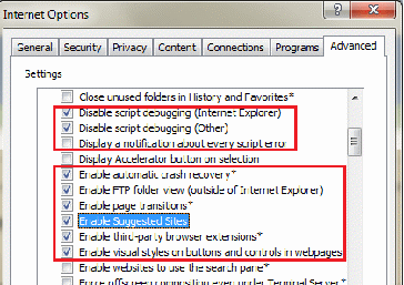 当禁用了弹出阻止功能以后,你可能会遇到另外一些不需要的警告信息,这些警告信息随时以弹出窗口方式在脚本运行的某一刻弹出来,你无法预料脚本运行到哪一步会遇到,像埋下了定时炸弹,给脚本运行带了更多的不稳定因素,屏蔽这些警告信息成为我们要解决的另一个问题。通过 IE 的选项 -> 高级设置中的设置,可以达到这一目的,如图 10 所示,首先禁掉页面脚本调试功能,对于页面脚本错误,不需要弹出窗口;同时启用 IE 的自动恢复机制,在 IE 出现意外崩溃的情况下能够自动恢复,保证脚本运行的连贯性。
