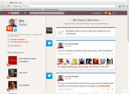 另外当专家信息出现在Bing右栏“人都知道”(Pepole Who Know)时,专家的Klout分数会得到提高,同时原始搜索数据也将成为其中的组成部分。Klout首席执行官Joe Fernandez解释称,比如说你写了一篇文章,当这篇文章有人搜索并进行点击时,我们将会与你的Klout账户进行关联。