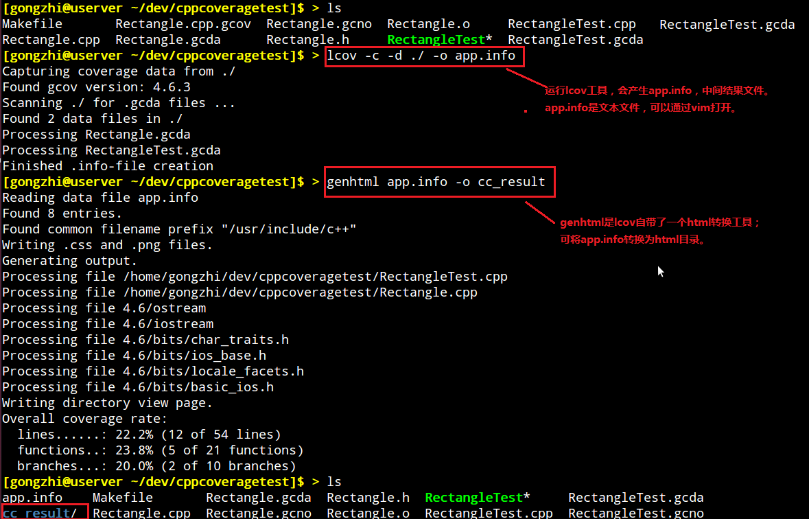 4. 使用lcov获取html形式的覆盖率数据;