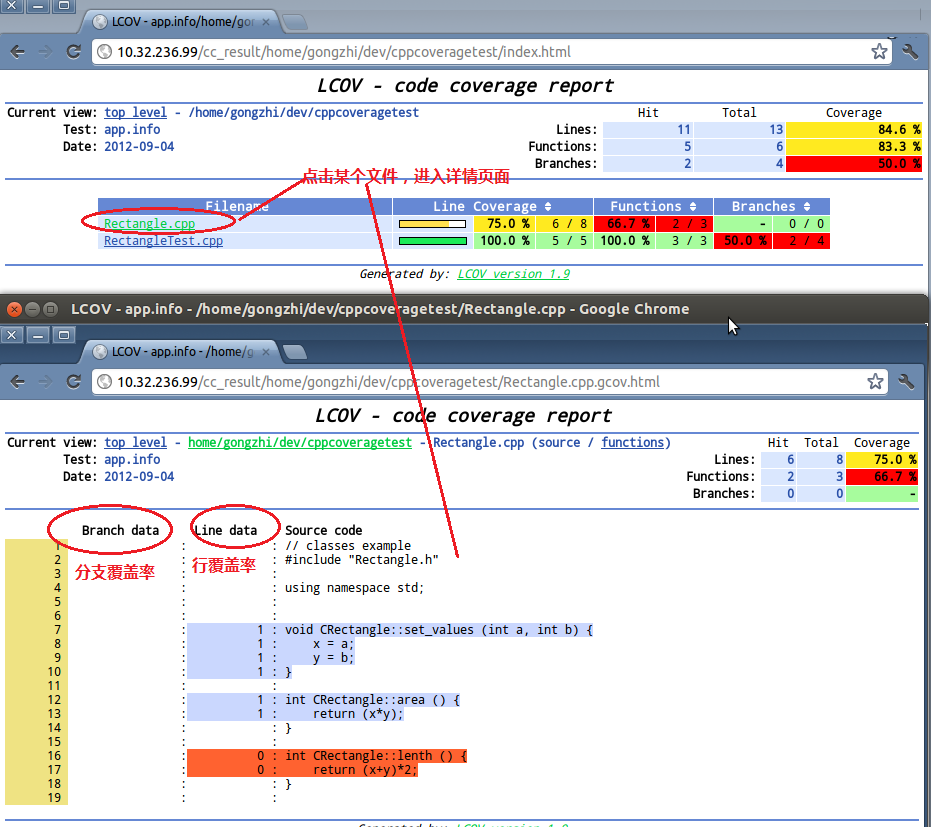有些时候需要使用html结果的数据展示,这样看起来更加直观一些。IBM开源了lcov这个工具,更多参见 http://ltp.sourceforge.net/coverage/lcov.php