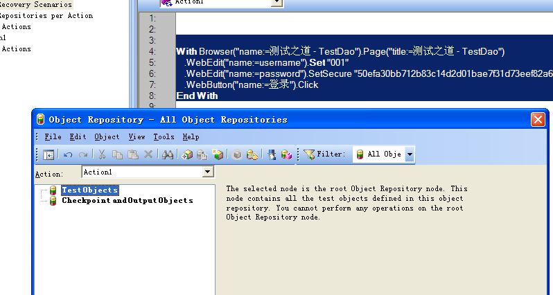 1、运行qtp,直接录制打开的页面,以下为录制代码: