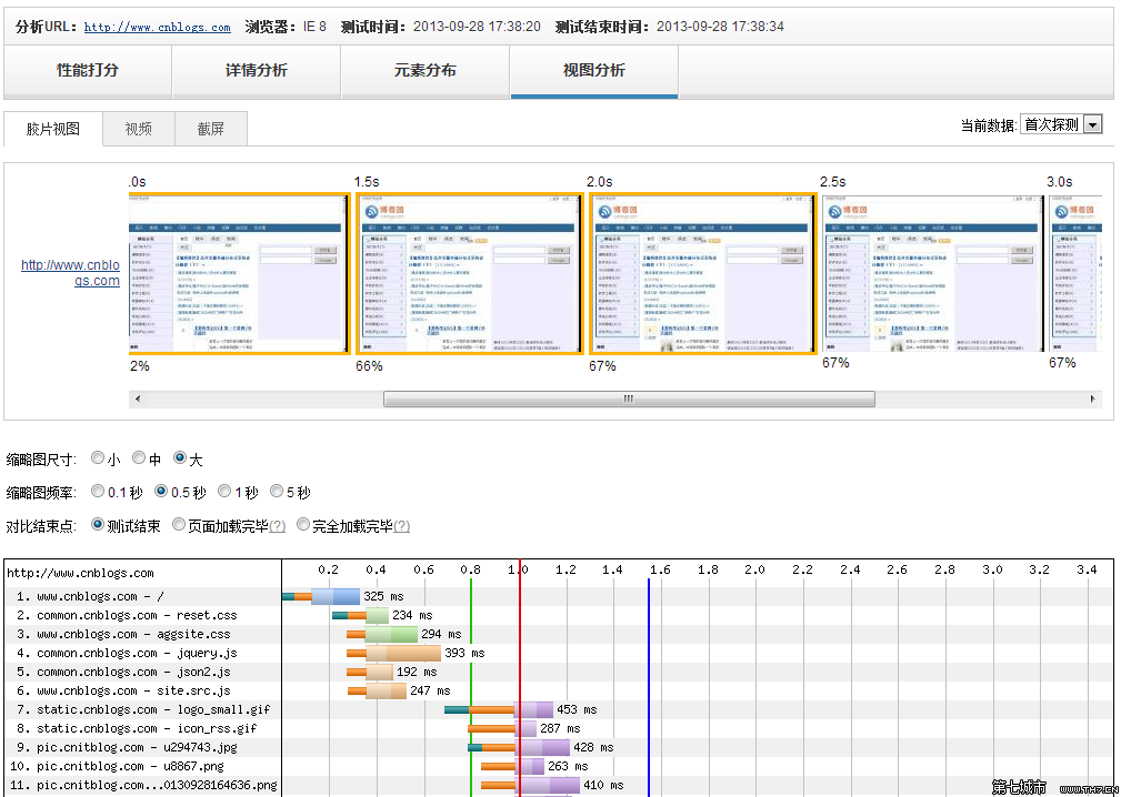 将整个网页生成的过程以胶片视图、视频、截屏的形式展现出来,并提供详细的状态栏加载日志。