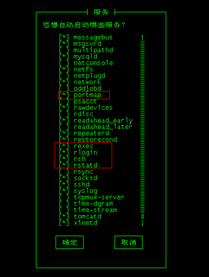 2.允许rstatd、portmap、rlogin、rsh、rexec这5个服务开机运行