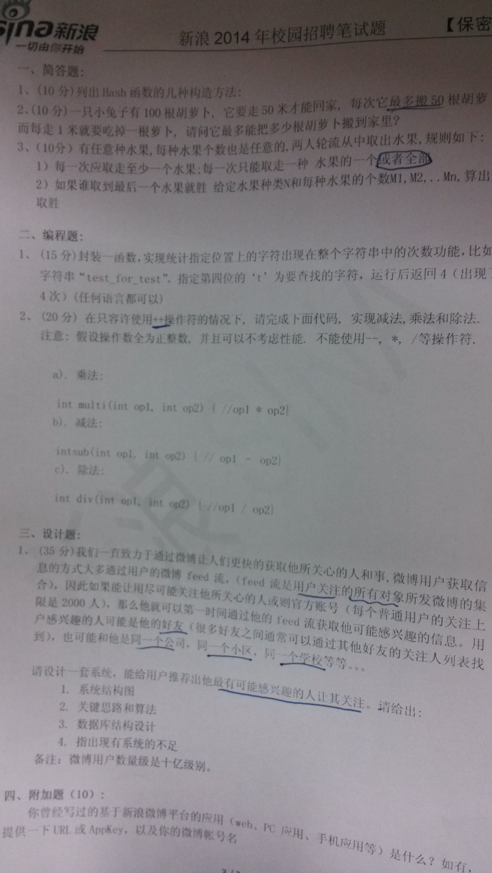10月17日,新浪2014校招应用开发笔试题