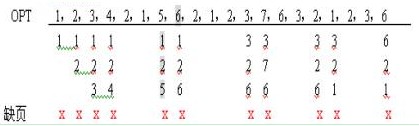 OPT算法因为要知道后面请求的页框,因此我觉得这个算法有个小小的bug,如果在某个请求中,若在该请求的页框之后的页框序列中至少存在一个和当前内存块中不匹配的页框,则按照内存块的顺序(从上往下)替换没有出现的页框。比如上面那个OPT例子。对于后一个页框请求,因为6未命中,且6之后没有请求的序列,因此应该替换3,所以替换后的序列为6 , 2 ,1 当然,这只是针对做题而言。