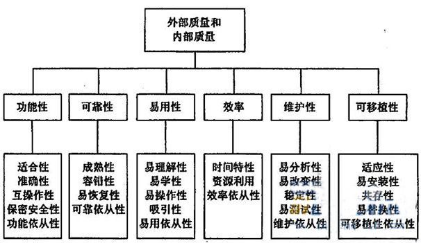 《软件工程—产品质量》(GB/T 16260-2006)中规定对软件的每个质量特性与子特性都有定义: