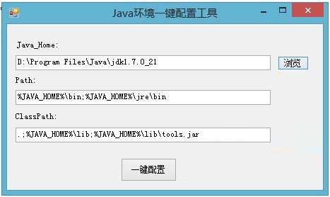 其实,写这篇文章的原因是因为我近发生的一件事情,我的专业是一个以实验为主的专业,前段时间大家一块做创新实验,因为实验的样本数目比较大,所以做实验那几天,基本上每天都在做重复的事情。我相信,每一个程序员不能容忍的是重复吧,这不符合编程的习惯啊,代码复用、面向对象、封装,我们始终都在减少做重复的事情。或许,这是我们的性格吧,当别人让你重复做一件机械无聊的事情的时候,我们的内心深处都想直接给它来一个循环。那么,这件事情还是如此,配置java环境并不难,但是每次都重复,尤其是当我记不住后两个变量的值的时候。如果程序员连自己都无法解救,那么这真的是一种极大的讽刺了:一边渴望效率,一边做着低效率的事情。这个程序不是很难,但是写一写可以减少很多的工作,这够了。另外,这个程序需要给管理员权限的,这些我还没有研究过,有时间再研究吧。那个注册表的程序,我写了一点,但是好像取不到值,还没发现是哪里出了问题,先放着吧。带着共享的精神,把这个工具给大家了。