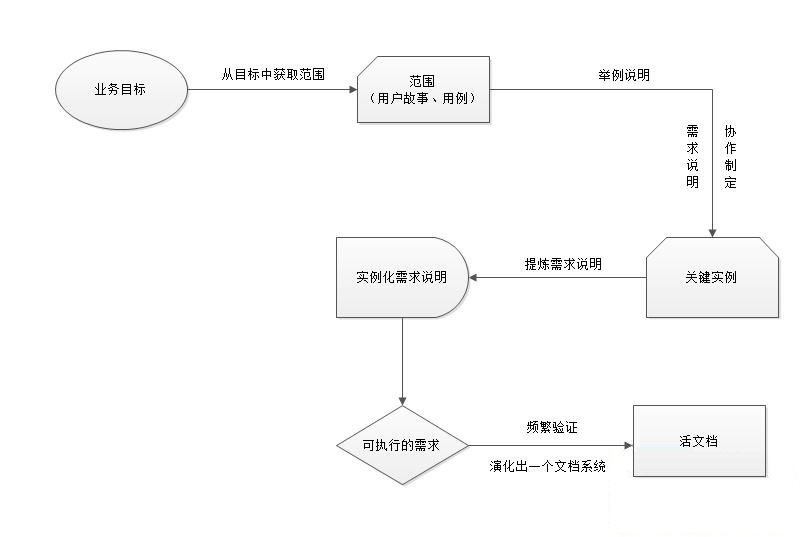 它既不是传统的需求文档,也不是设计文档,更不是测试用例文档,但适用于从需求、设计、开发和测试的每一个阶段,而且都是从用户的角度为出发点的。那我认为那是我们想要的过程模式。
