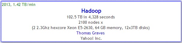 显然我们使用Terasort,判断HDFS文件系统(其实还包含了MR)性能好坏的依据与SortBenchmark是一致的,即计算数据量和运行时长的比值,根据单位时间的排序数据量来判断不同HDFS版本之间的性能差异。