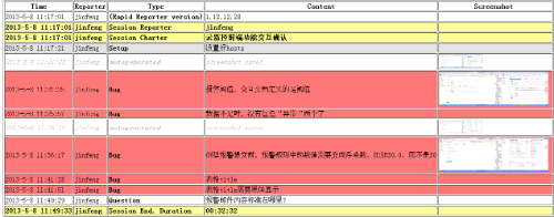 按时间顺序排列,按颜色区分问题类型,带屏幕截图。