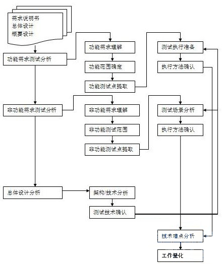 上面这个测试分析图展示的在一个全新的项目开始准备测试时,如果进行测试分析的基本方法。