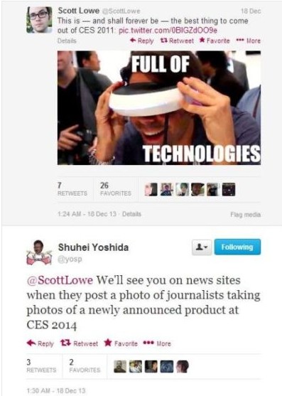 游戏资讯网站IGN主编斯科特·罗威(Scott Lowe)上周发布了一张虚拟现实头戴设备的照片,称之为CES 2011上好的产品。而吉田修平虽然没有证实任何消息,但却回复称,我们将在CES 2014上看到新发布的产品。