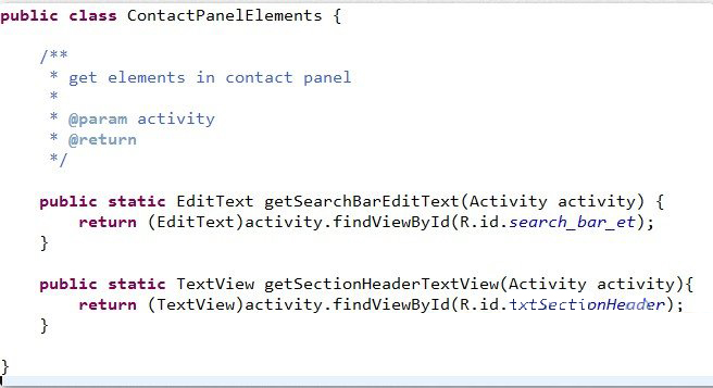 当我们要自动化某个用例的时候需要用到搜索框这个控件,我们只需通过ContactPanelElements.getSearchBarEditText可以获得