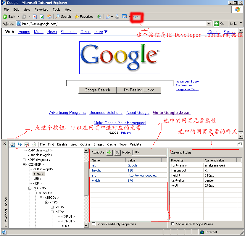 我们利用IE Developer ToolBar可以找到各种元素,那么HTML里的网页元素如何和WatiN里的类联系上来呢,请看下表: