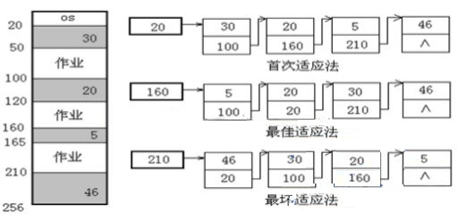 有作业序列:作业 A 要求 18K;作业 B 要求 25K,作业 C 要求 30K。系统中空闲区按三种算法组成的空闲区队列: