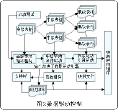 这个案例是登陆时一个image的按钮,在案例中我们将点击按钮去进行下一步操作。如果采用关键字驱动模式,那么image是我们的一个行为数据。而src、value、name等是image的内涵属性。 如果测试行为作为测试数据的话,因为测试数据在框架内很容易实现参数化控制,这样,我们可以将测试行为作为驱动案例来执行,从而实现测试行为以及测试数据的变更控制。这是一个测试点上的变更控制,但是一个系统由多个测试点组成,为了处理测试点复杂的依赖关系,我们采用流程总控方法。如何进行流程总控,同样采用了数据驱动流程,通过有效的控制文件的定义,来驱动这个流程的运转。请参看图1、2所示的两个数据流程控制图。
