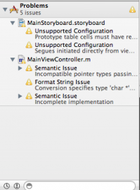 还要补充点,程序开发过程要多关注左边栏中Issue Navigator里的警告信息,Xcode4不仅会警告,还多数给出解决建议,能避免后面不必要的Crash。