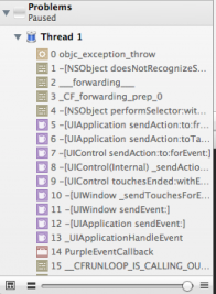 Xcode4上还有个更好用的定位方法,是设置一个Exception Breakpoint好了。