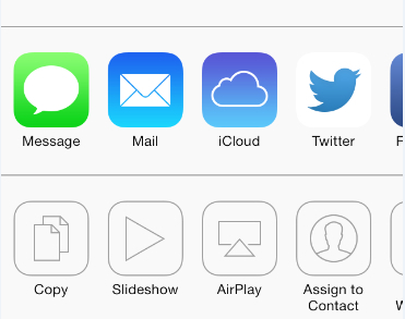 ▲ iOS 7 的分享菜单中,有没有人觉得下面显白的一栏是不能使用的呢?