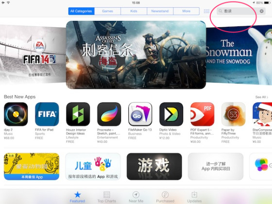 ▲ 例如在 iPad 上 的 App Store 搜索了一次之后,搜索的关键词将一直出现在右上角的搜索框中,无法移除。