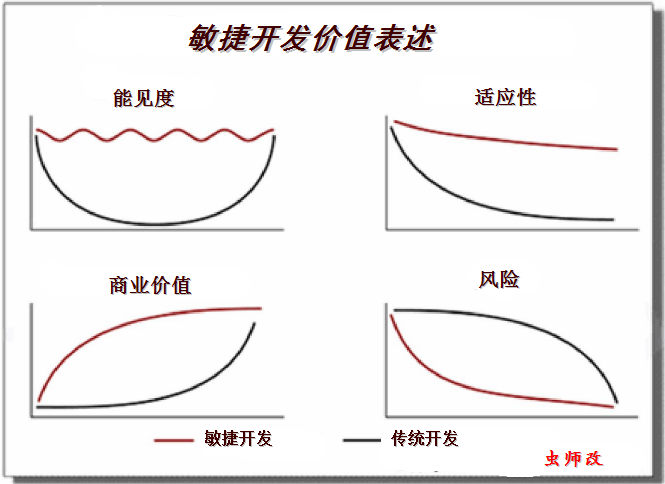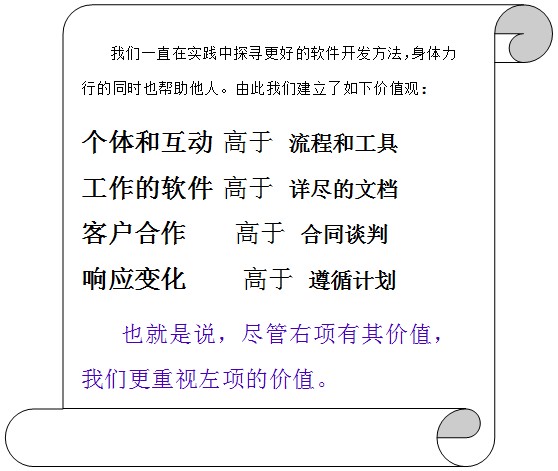 通过上面有趣的两种游游戏的对比,以及价值表述的对比折射出了传统开发与敏捷开发的方式的对比,其中的优劣不言而喻。