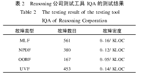 表2是对3197302行、美国生产的C++程序4类故障的测试结果。可以看出,该4类故障总的故障密度为0148/KLOC,也是说,大约2000行C++的代码有1个故障。