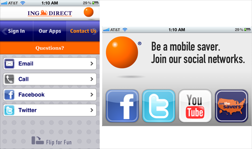 5. 设计过程中需考虑纵向和横向的设计。越来越多的设备能支持多个方向,并自动调节以适配到用户的物理方向。当用户改变设备方向时,确保用户的位置位于画面中。如果方向变化后有附加或不同功能,需要明确指示,如下图应用ING所示。