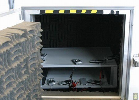 通话功能是手机为重要的一个功能,而一部手机的好坏直接的评判标准是通话质量的好坏。上面的图片展示的是手机扬声器的测试,在这个容器里,手机会花耗成百上千个小时重复地播放这一段录音直到测试仪器接受到一个语音系统的错误信号为止。严格的测试保障了索爱手机的优异品质。