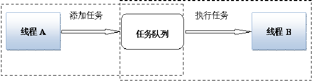 注:两个虚线框分别表示线程A和线程B恩能够访问的数据边界,由此可见 任务队列是线程间通信的媒介。