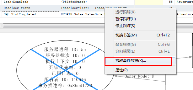 17、可以保存死锁图像,右键然后选择导出事件数据,并另存为xdl文件: