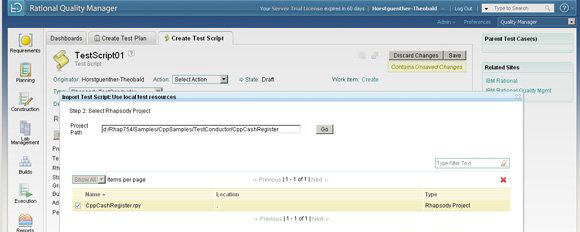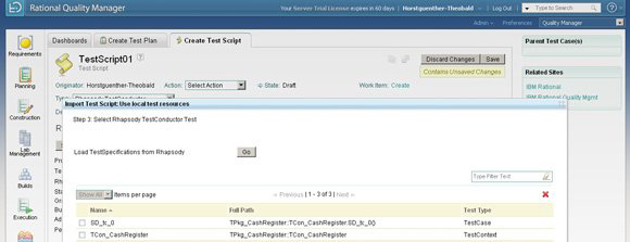 因此,当您 Rational Quality Manager 之中创建一个测试脚本时,您可以按照以下的步骤将其连接至 Rhapsody 之中一个可执行的基于模型的测试: