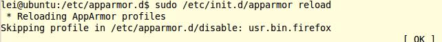 sudo /etc/init.d/apparmor reload
