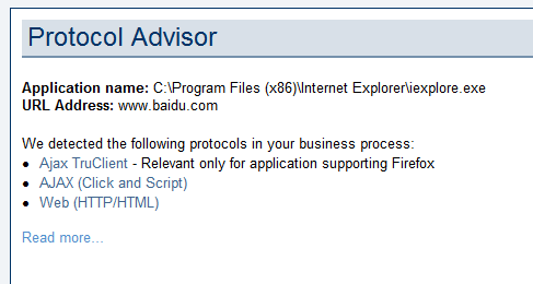 弹出Protocol Advisor,是不是发现它和 “开始录制”脚本的对话框长得太像了。