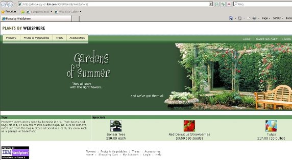 "Garden of Summer"是一个基于 IBM WebSphere Application Server 中自带的以销售鲜花、水果、绿植为主的电子商务网站。