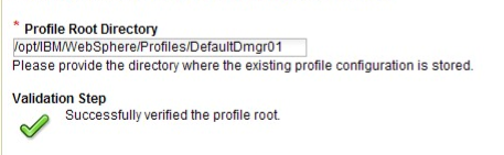 第四步:输入 Websphere Application Server 的 profile 路径并且进行 WAS 路径验证,默认值 (linux 示例:/opt/IBM/WebSphere/Profiles/DefaultDmgr01)