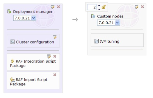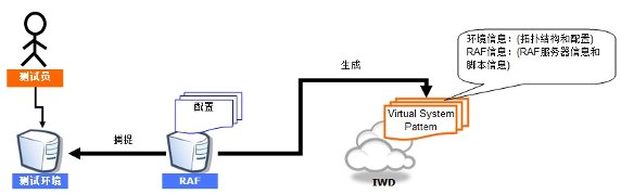 在 RAF 读取环境信息的同时, RAF 在与 IWD 的集成环境当中,生成了一个虚拟系统模式。这个虚拟系统模式包括了与现有环境信息相同的中间件拓扑结构和配置信息,以及 RAF 的相应信息和脚本文件。