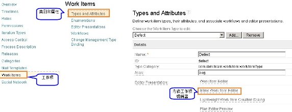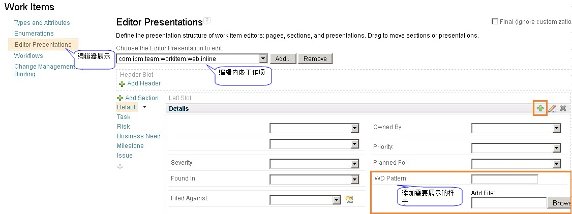 在上图中选择工作项 (Work Item),然后为这个工作项添加属性(Types and Attributes),添加完毕后可在创建新的缺陷时看到 IWD Pattern 字段,然后需要编辑工作项展示页面,编辑完毕后创建新的缺陷页面会呈现更改后的页面,包括 IWD 虚拟系统模式字段。