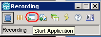 运行上述这条命令,会启动 RFT 录制小窗口。点击图中红色标记的 Start Application 按钮打开 Start Application 窗口。
