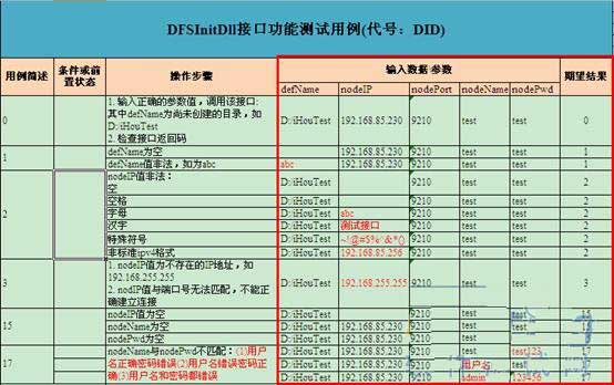 测试用例表格是根据平台测试组通用的测试用例模版修改而来,主要是增加了详细的输入参数列,工具执行时根据读取这些数据作为接口的输入参数。