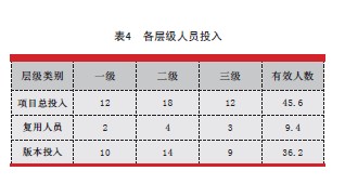S版本测试工作量为5个项目工作量的总和,共6900fps;测试周期为61个自然日;5个项目存在人员复用的情况(如表4所示)。