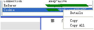 使用右键弹出菜单Copy,拷贝Cookie内容